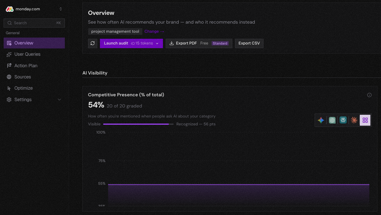 Monday.com — 54% AI visibility, ranked 7th